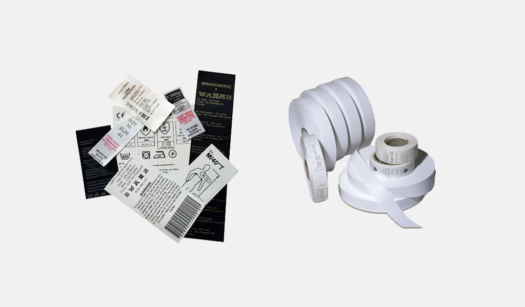 Yıkama talimatları ürün, içerik, imalatçı, ithalatçı, ürün hassasiyeti ve benzeri bilgilerin yer aldığı farklı tür kumaşlara baskı yapılabilen etiket çeşitleridir.